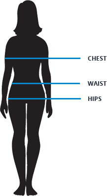 | SIZE | CHEST(IN.) | WAIST(IN.) | HIPS(IN.) |